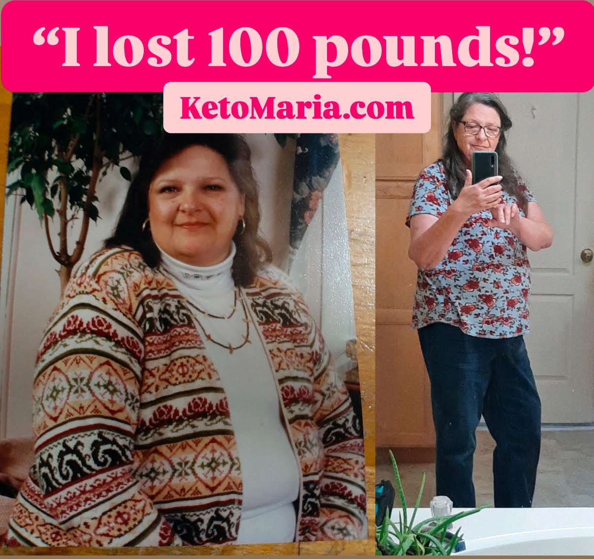 “Me at 40. Stayed this weight into my 50’s. UGH!!! Right is Me in my 60’s. I started the Emmerich’s way at 60. Fall off the Wagon. Climb back on! I have 50 lbs to lose. Down over 100. 2024 is my year to get close to goal!” – Leone