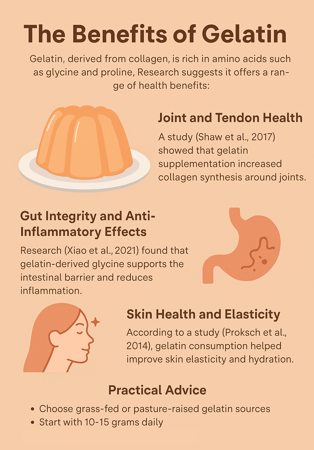 Practical Takeaway: Regular gelatin supplementation may reduce signs of aging from the inside out — think fewer fine lines and more bounce in your skin.