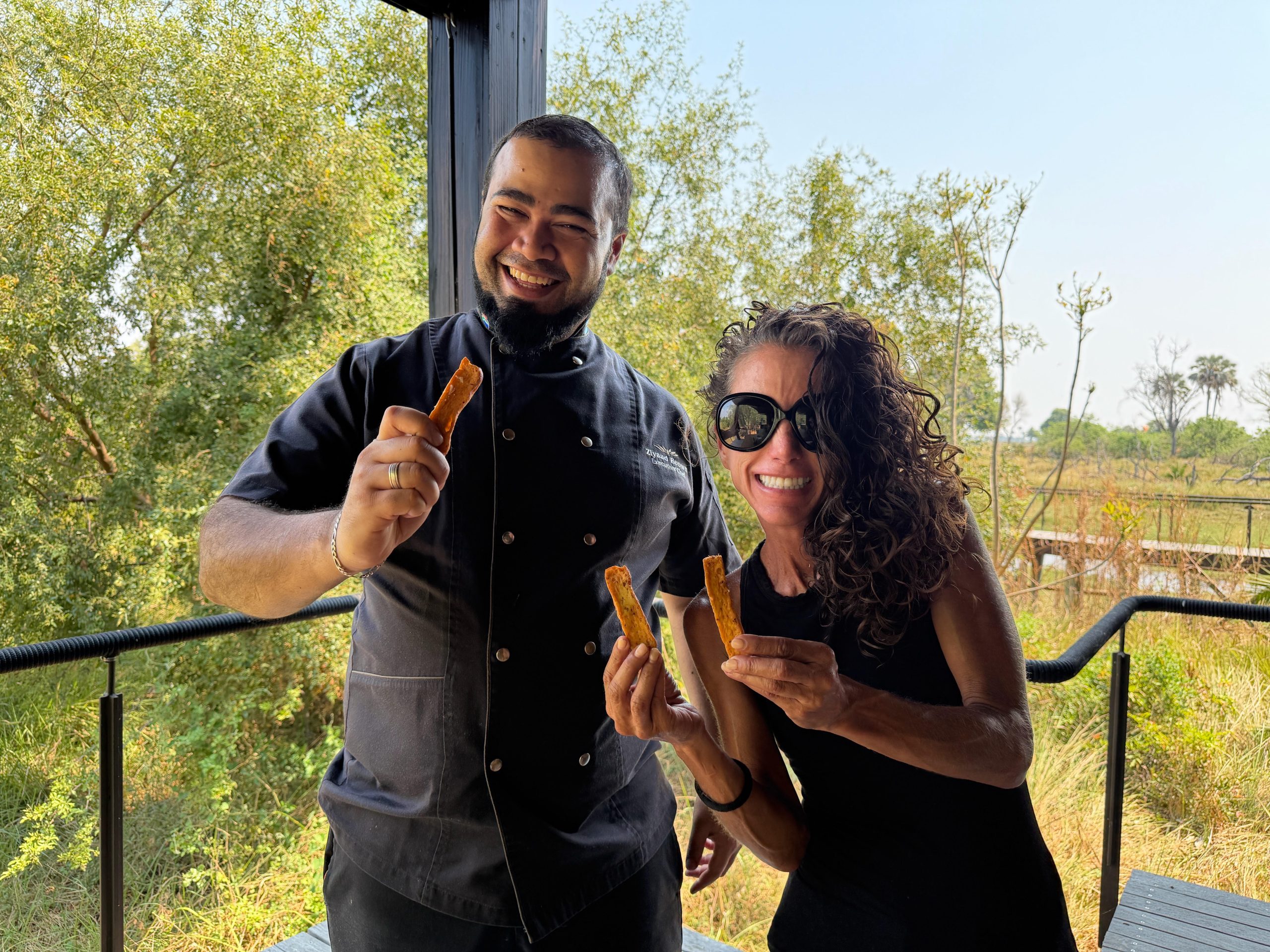When we were on safari at Xigera in Botswana, we had the most wonderful time! We have been at this safari lodge before and it was our favorite lodge. Four years ago, we met Chef Ziyaad Brown, who is not only super kind, he is also very creative! I only wish I had more time to be at Xigera so I could mash our brains together for some really crazy recipe ideas!