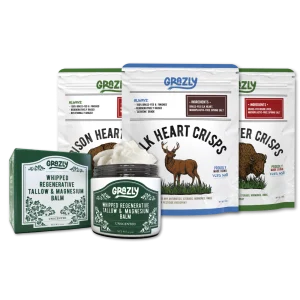 Grazly makes lots of high quality snacks and products from a bison and elk. They make Crisps, tallow, lotion and more.