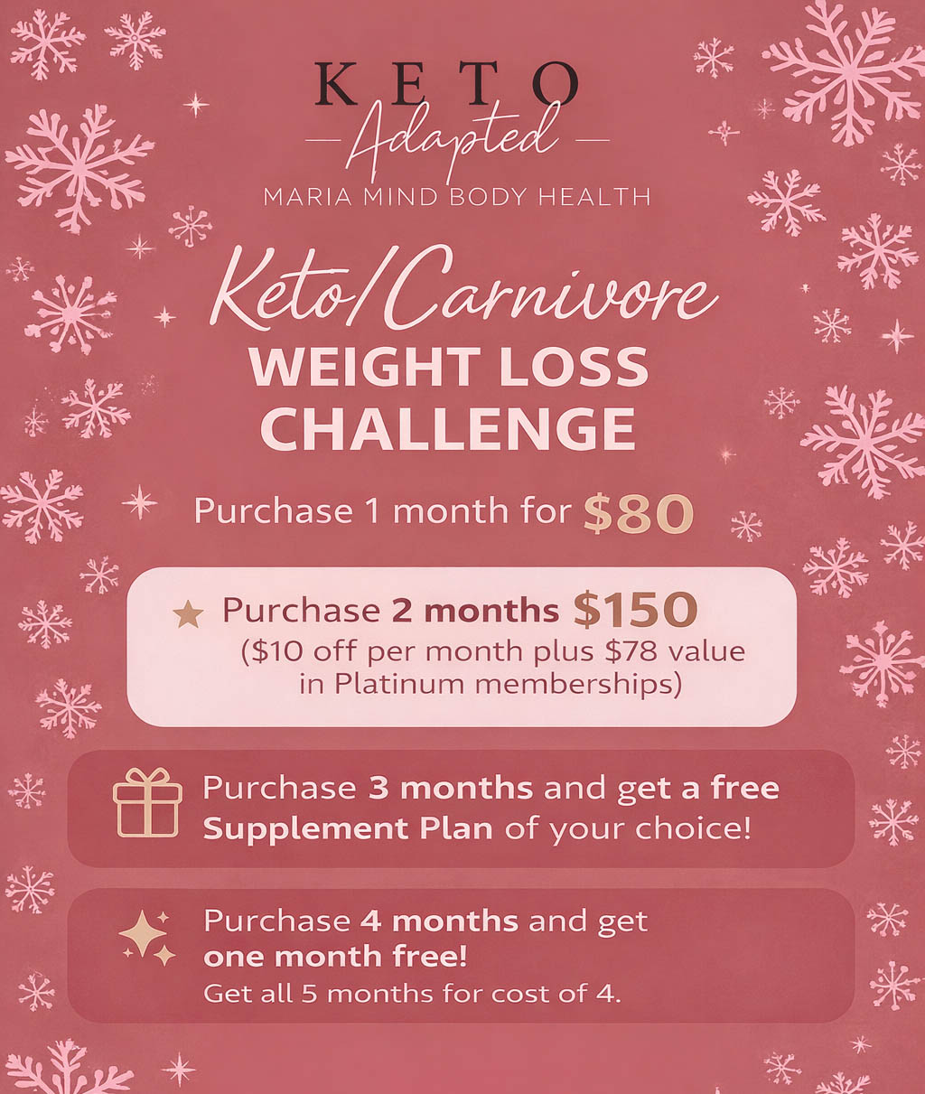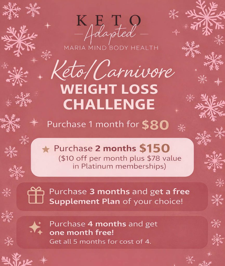 - Keto Meal Plans OR Carnivore Meal Plans (both with PSMF days) with amazing innovative recipes! Not just eating chicken breasts every day, lots of variety.