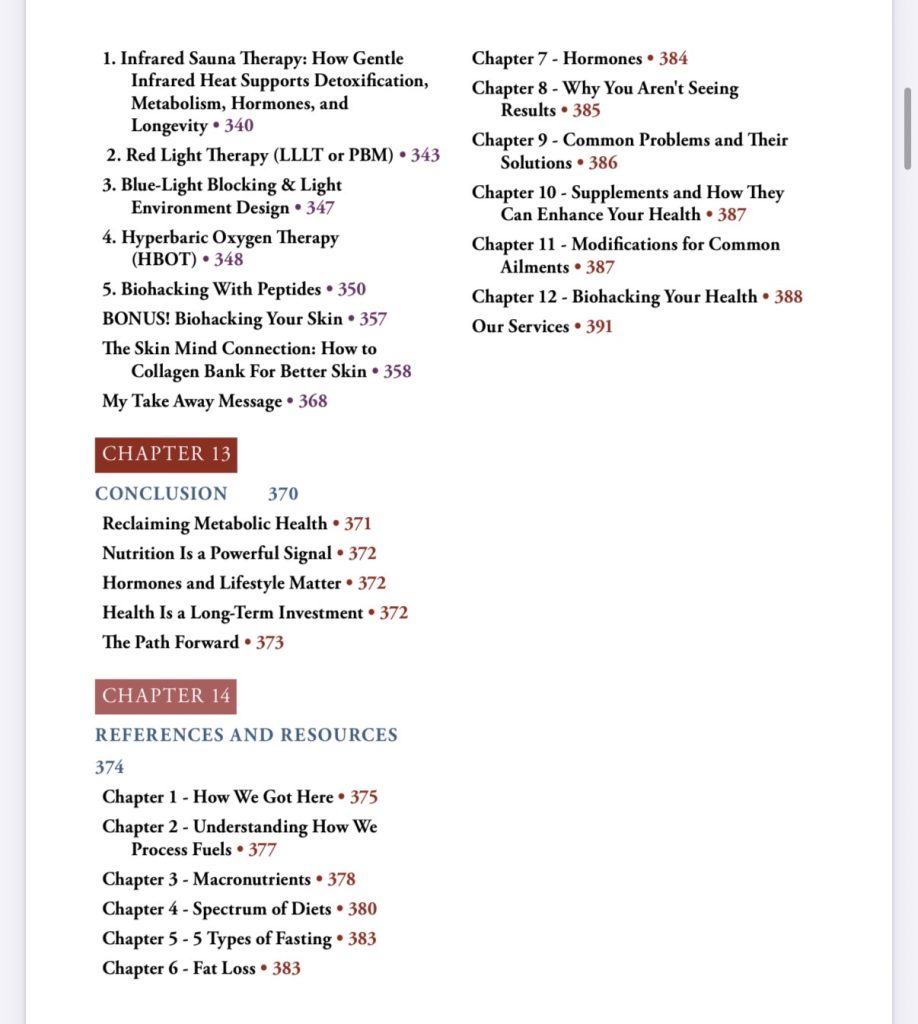 Here is a peak into the topics covered in The Art of Metabolic Health: