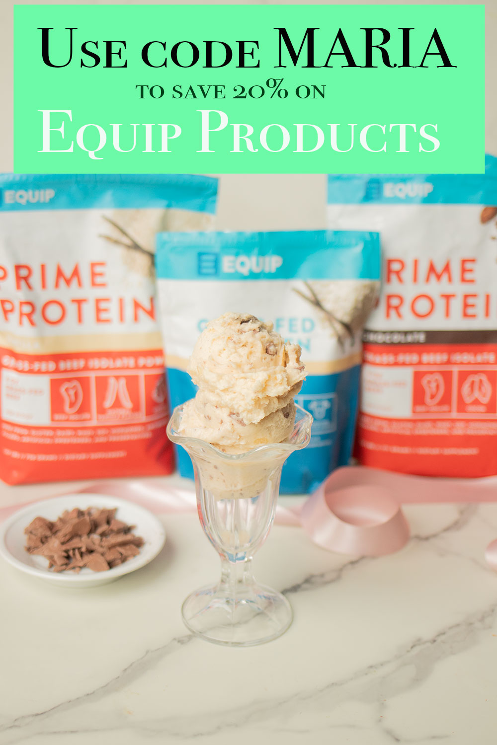 To make my protein mint chip ice cream I used Equip Prime Protein and Grass-Fed Collagen! I love consuming desserts with my health in mind!